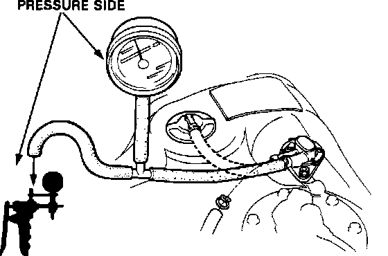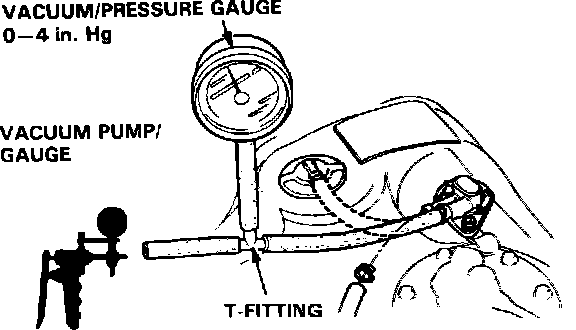 2. Remove vapor line from the fuel tank and connect a vacuum/pressure gauge and pump via a T-fitting.