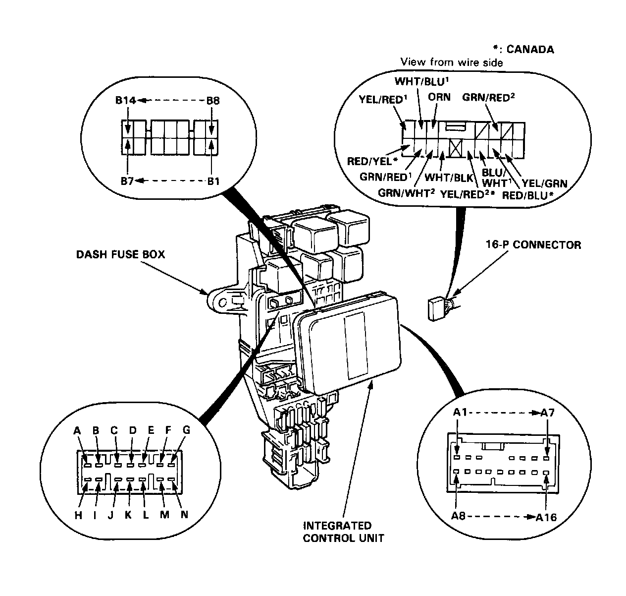 Remove the left side kick panel cover, then disconnect the 16-P connector from the integrated control unit. Remove the integrated control unit from the dash fuse box.