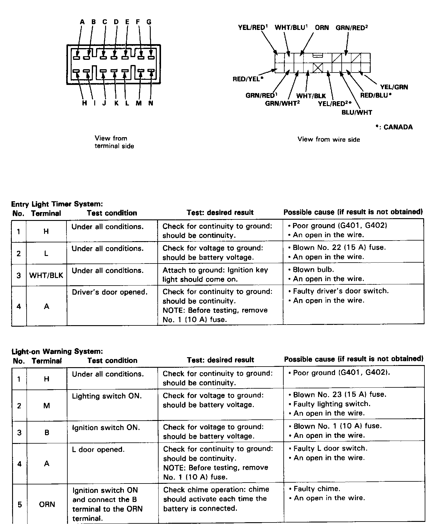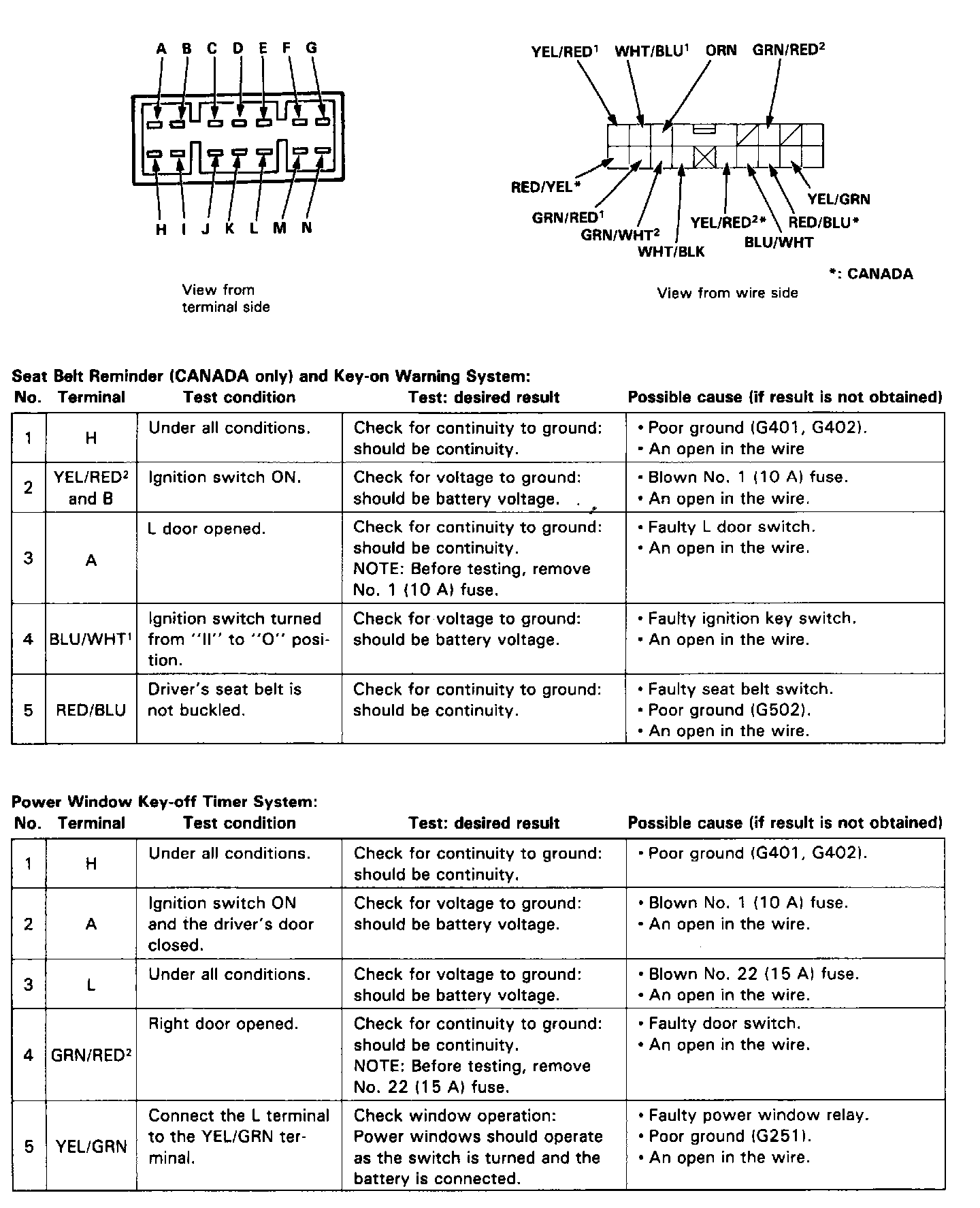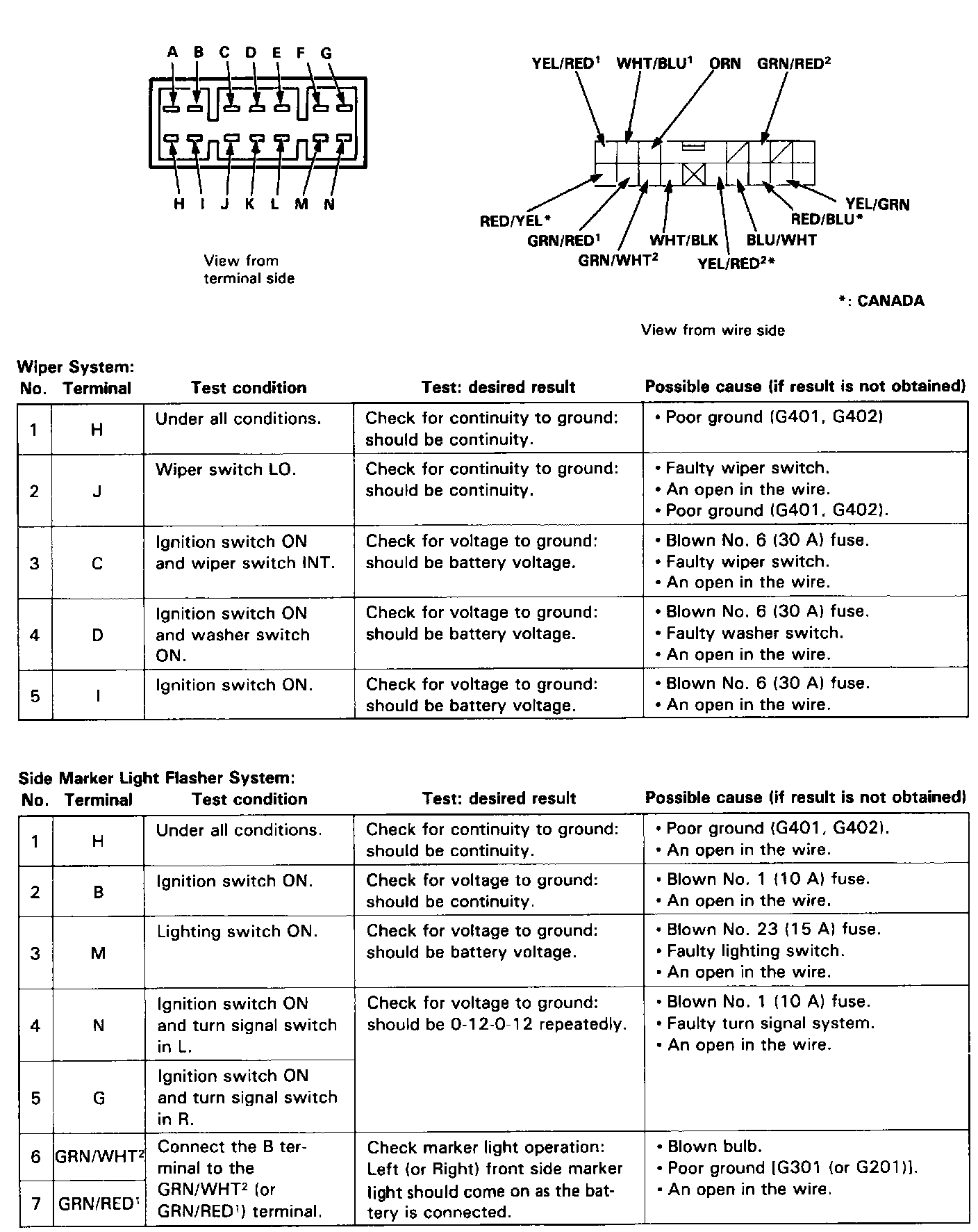 ^ Several different wires have the same color. They have been given a number suffix to distinguish them (for example BLU/WHT1 and BLU/WHT2 are not the same).