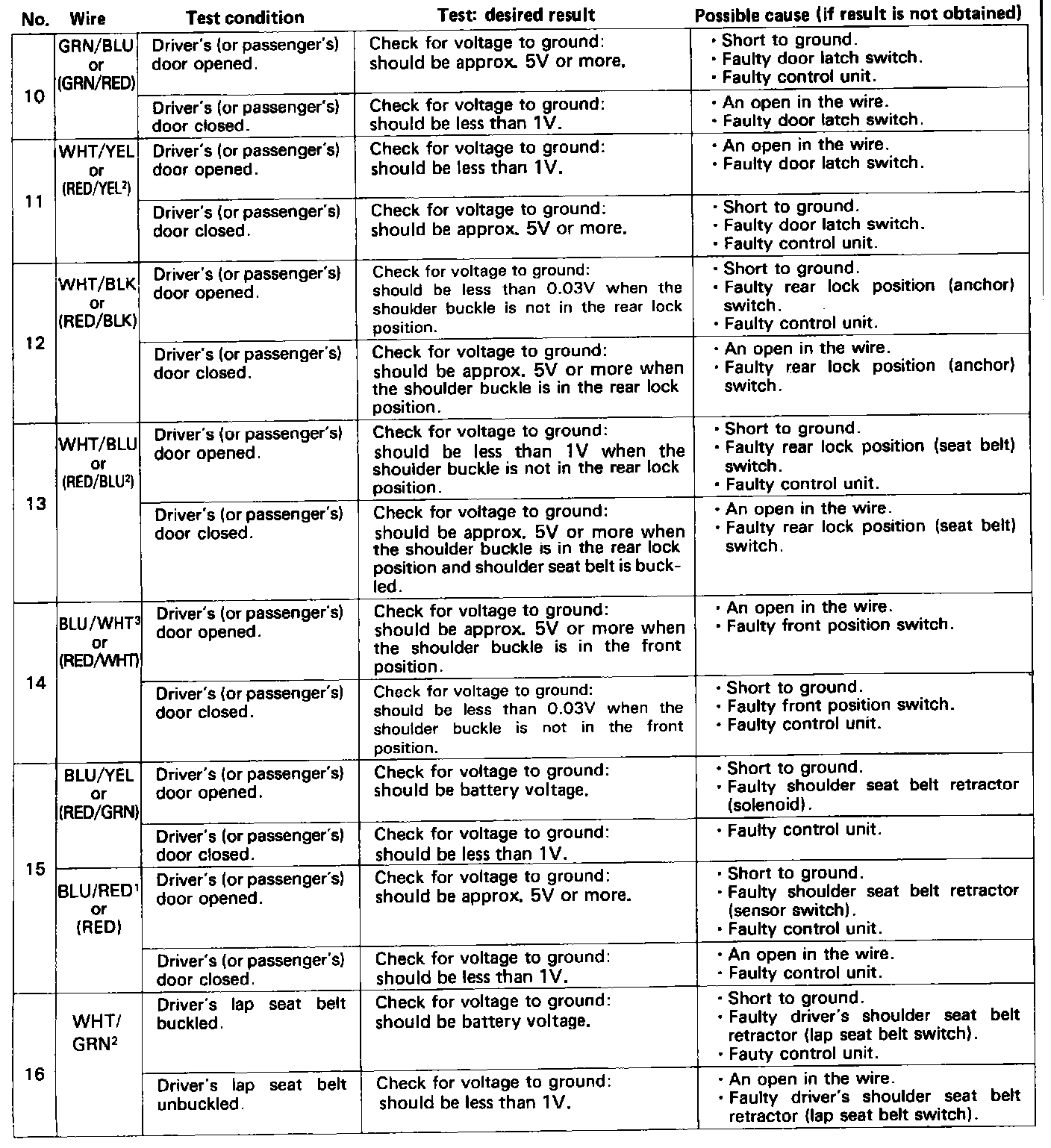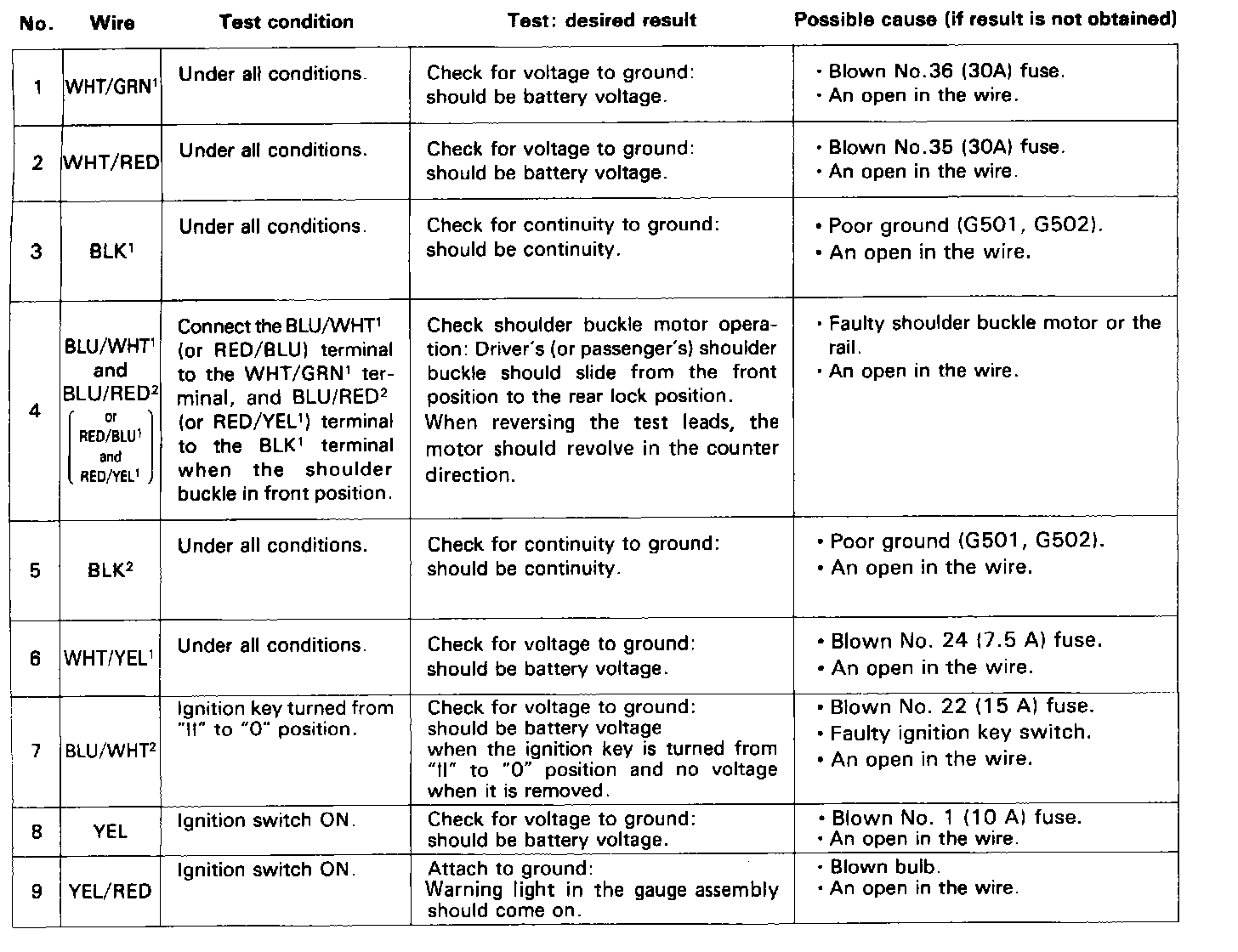 ^ Several different wires have the same color. They have been given a number suffix to distinguish them (for example WHTIGRN1 and WHT/GRN2 are not the same).