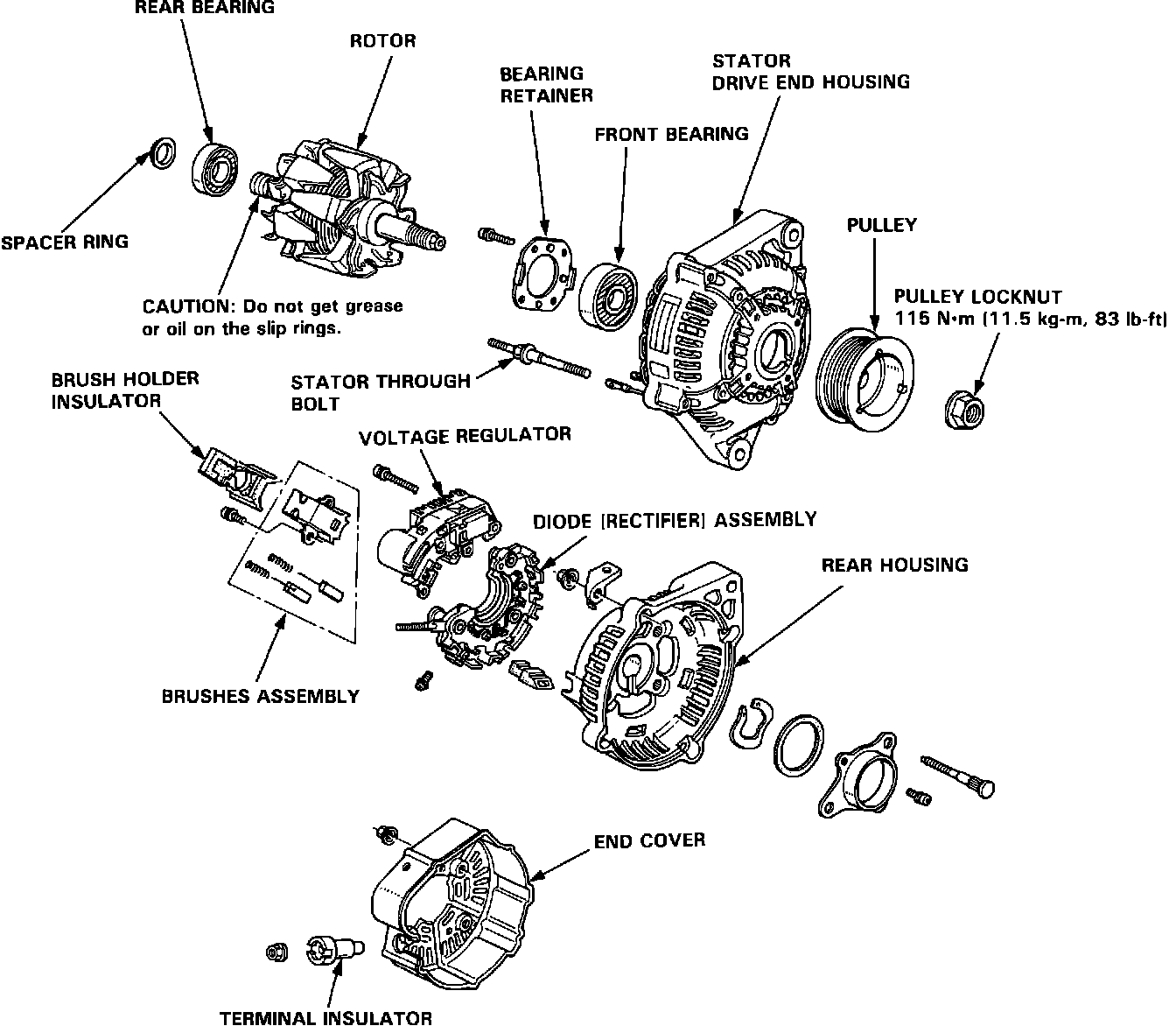 NOTE: It is only necessary to separate the pulley, drive end housing, and rotor when the front bearing needs replacement.