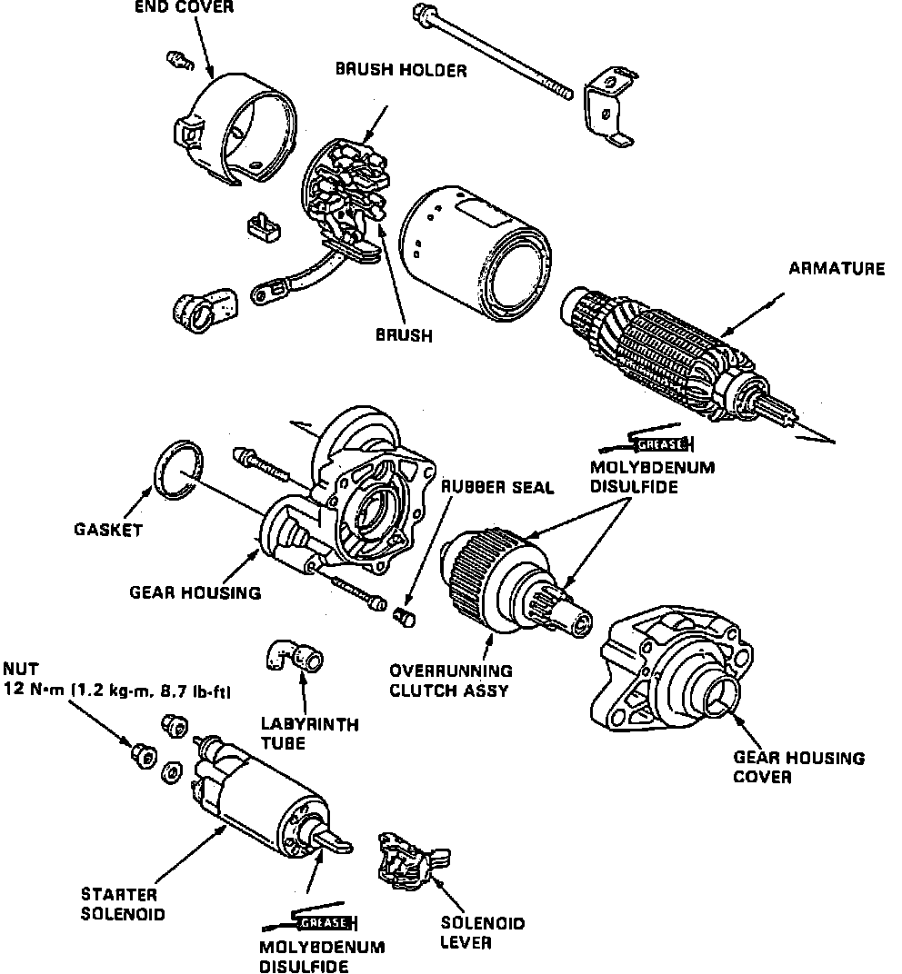 The Accord and Prelude starter Fig. 1 is a gear reduction type with a 1.4kw rating. It uses a planetary gear train to transmit armature rotation to the pinion shaft. A solenoid switch is mounted on the starter motor.