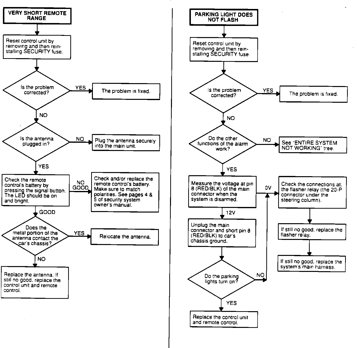 Very Short Remote Range and Parking Light Does Not Flash