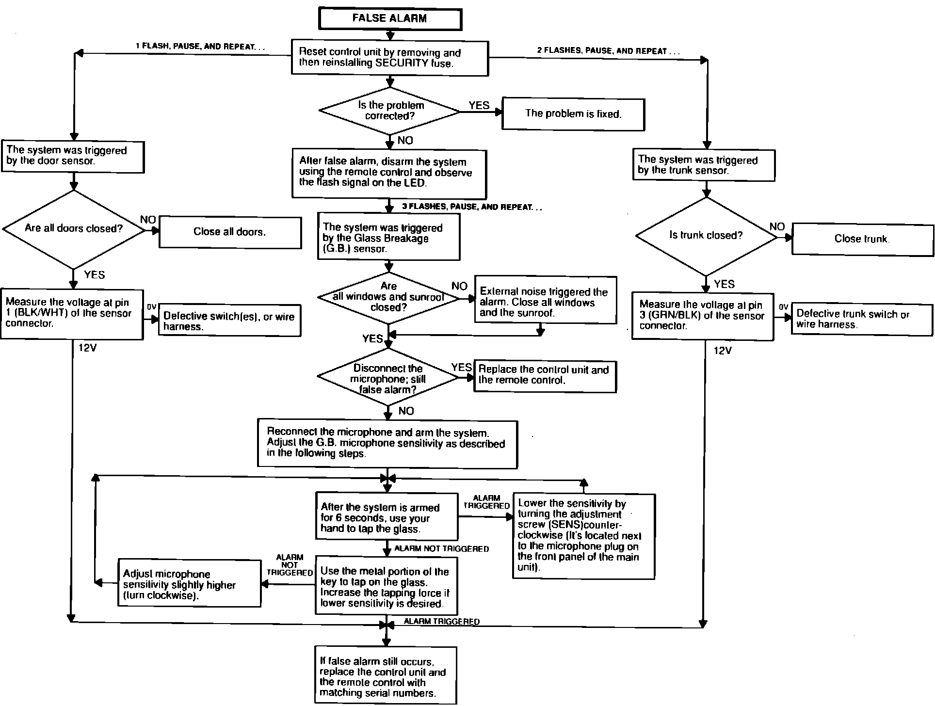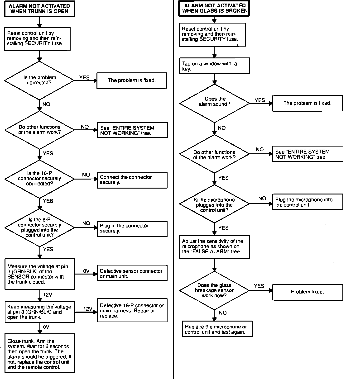 Alarm Not Activated When Trunk is Open Or When Glass is Broken