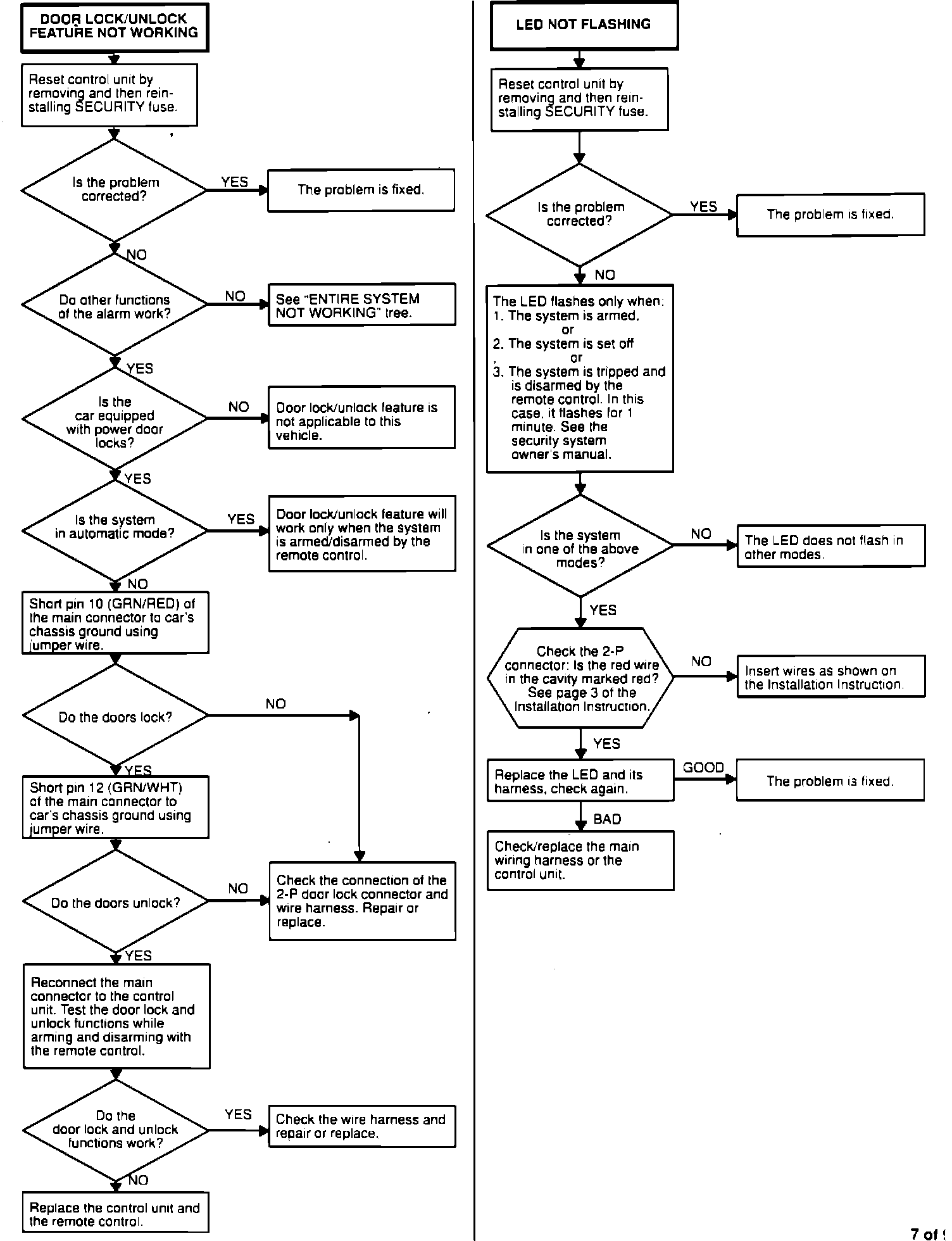 Door Lock/Unlock Feature Not Working/Led Not Flashing