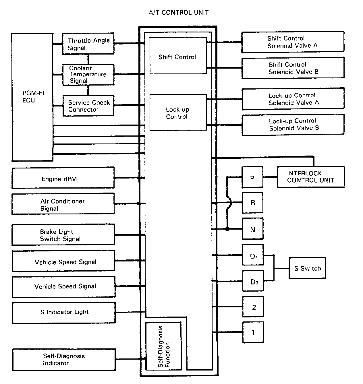 The electronic control system consists of the automatic control unit, sensors, and 4 solenoid valves Shifting and lock-up are electronically controlled for comfortable driving under all conditions.