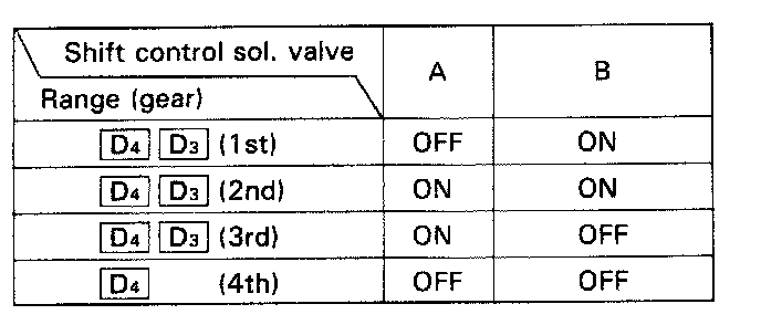 The combination of driving signals to shift control solenoid valves A and B is shown in the image.
