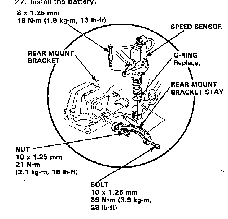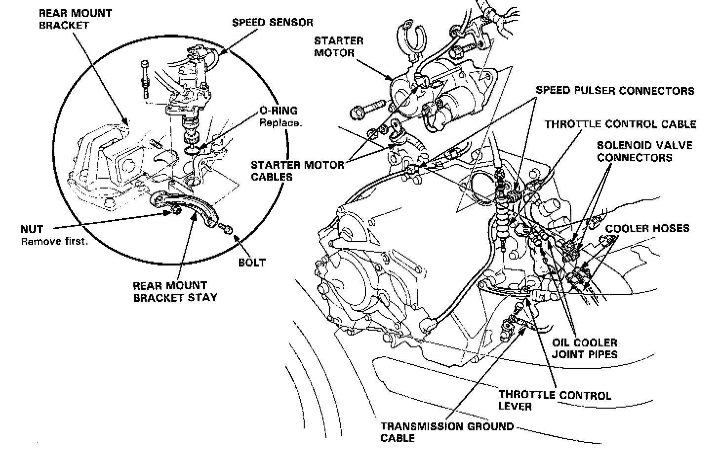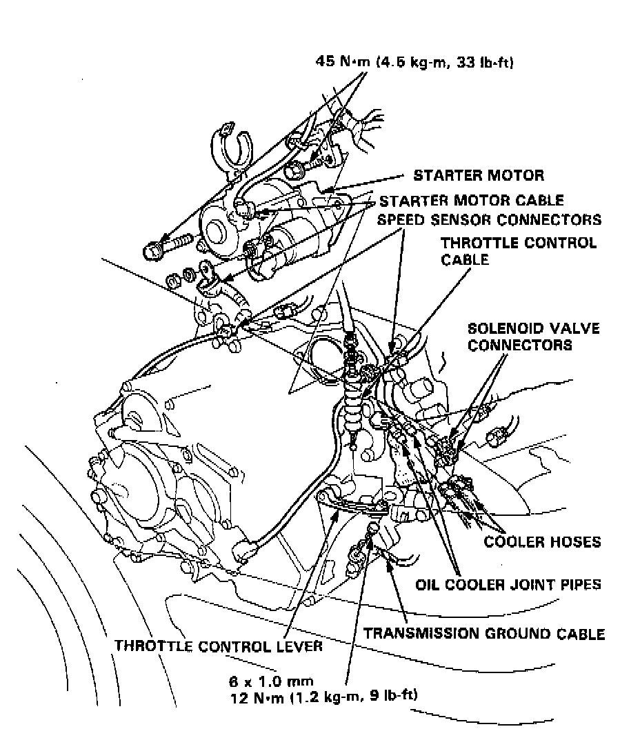 4. Disconnect transmission ground cable and speed sensor connectors.