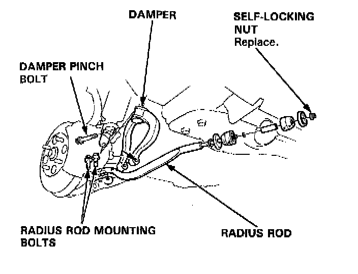 16. Remove the bolts and nuts, then remove the right radius rod.