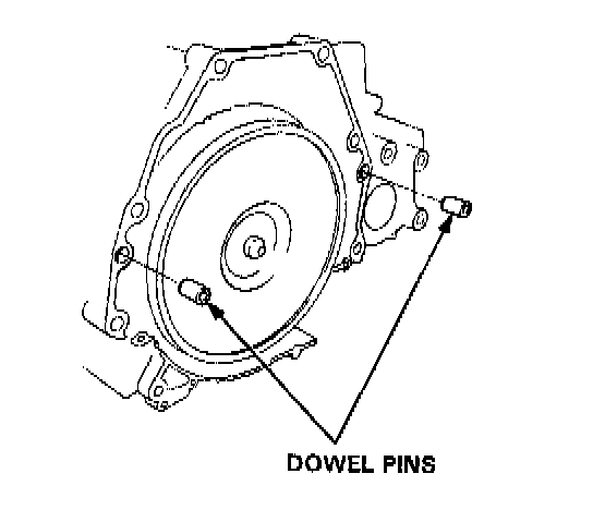 25. Pull the transmission away from engine until it clears the 14 mm dowel pins.