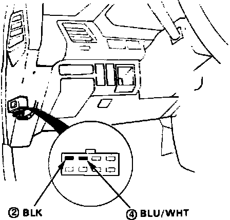7. Attach the positive probe of the voltmeter to the BLUE/WHITE wire (pin 4) and the negative probe to the BLACK wire (pin 2).