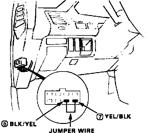 9. Connect a jumper wire between the BLACK/YELLOW wire (pin 5) and the YELLOW/BLACK wire (pin 7).