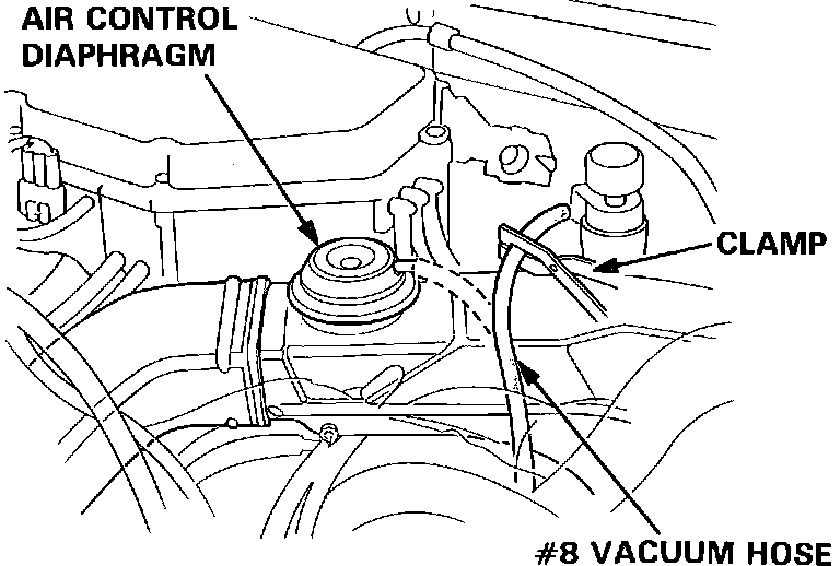 1. Disconnect and plug vacuum line #8 from the air intake control diaphragm.
