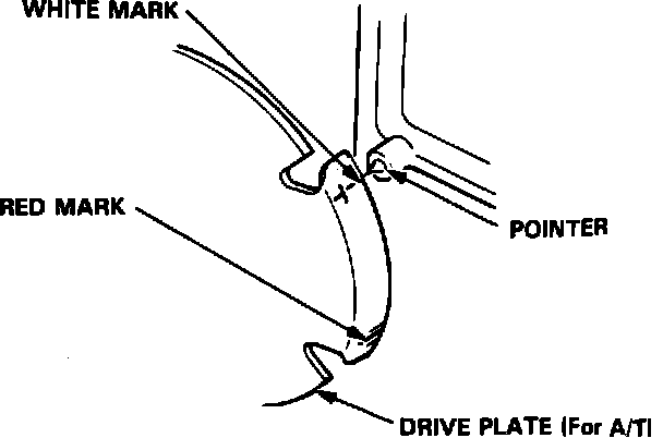 3. With engine at normal operating temperature, point timing light toward flywheel (M/T) or toward the drive plate (A/T).