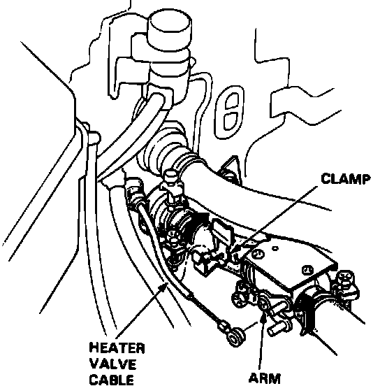 3. Disconnect heater valve cable from heater, then move front seats to there full rearward position.