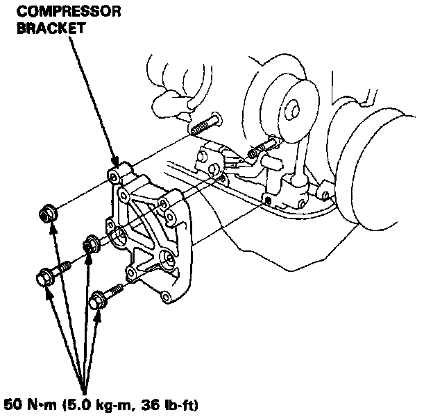 11. If necessary, remove the tow compressor bracket mounting bolts, tow nuts, and compressor bracket.