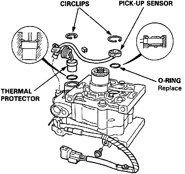 3. Remove the circlips and thermal protector and pick-up sensor.