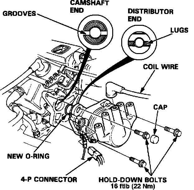 NOTE: Coat a new O ring with engine oil prior to installing the distributor