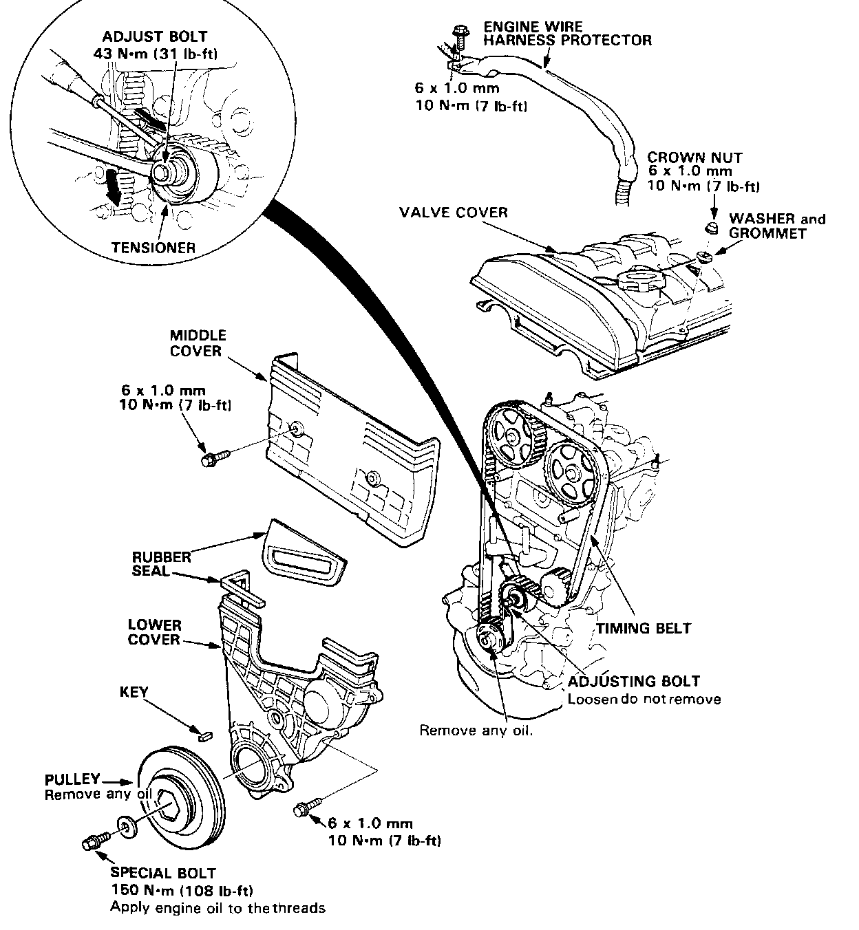 9. Remove the timing belt middle cover and the lower cover.
