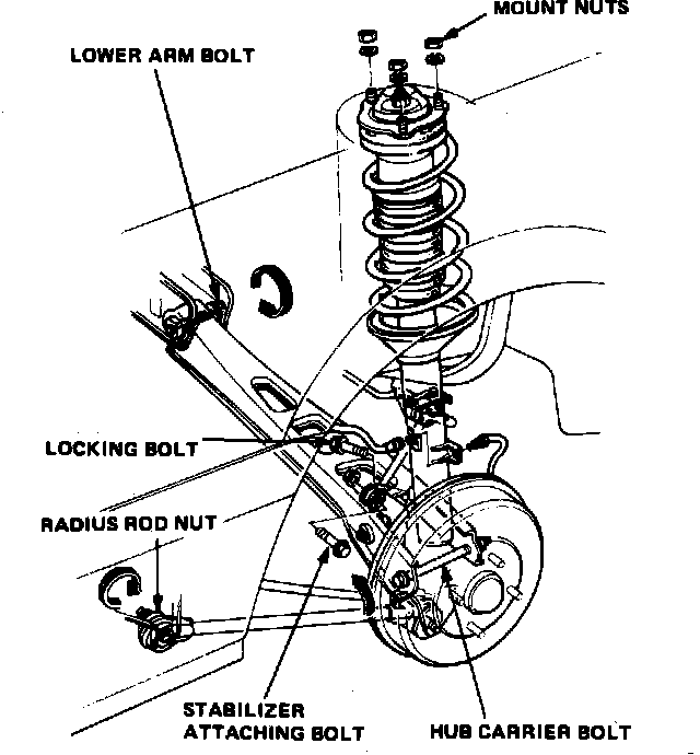 Fig. 2 Exploded View Of Rear Suspension. Prelude w/4 Wheel Steering: