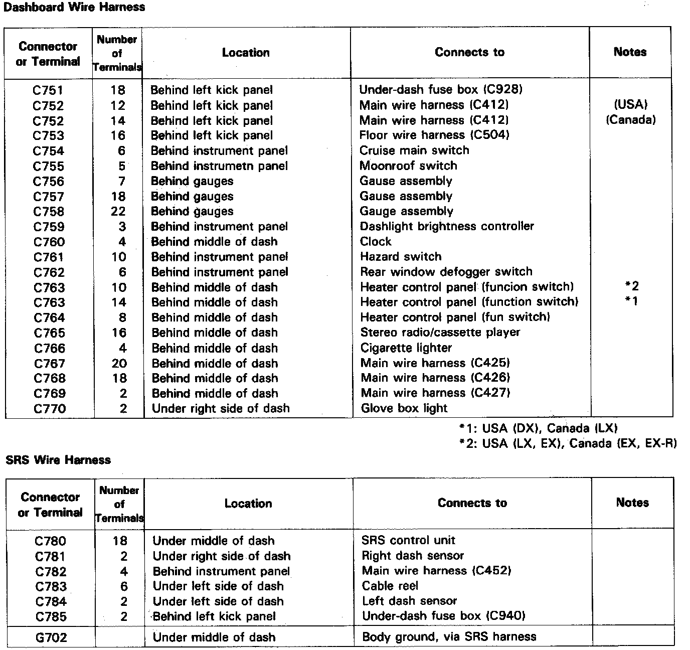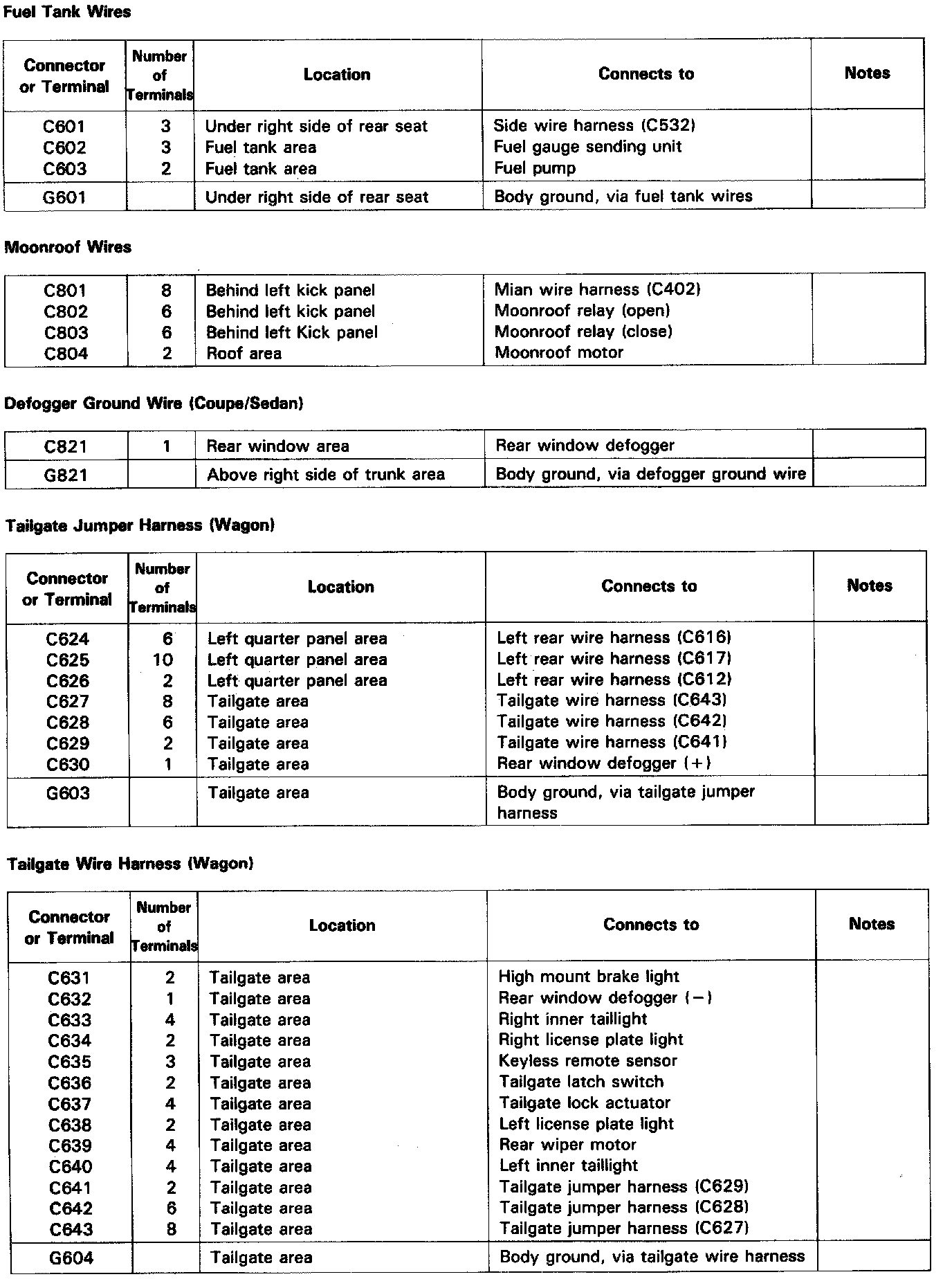 (Fuel Tank / Moonroof / Defogger / Tailgate) Wire Harness