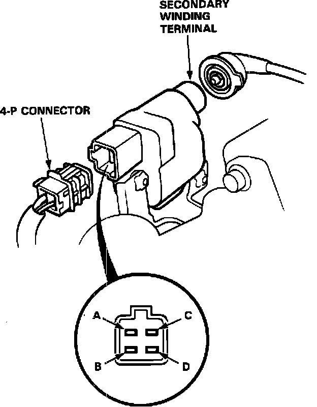 1. With the ignition switch OFF, disconnect the 4P connector and ignition coil wire.