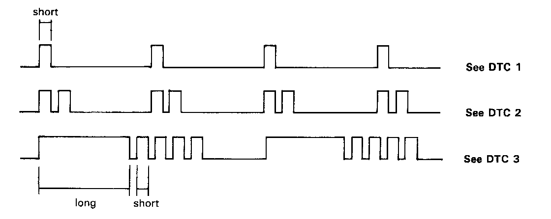 Codes 1 through 9 are indicated by individual short blinks, Codes 10 through 15 are indicated by a series of long and short blinks. One long blink equals 10 short blinks. Add the long and short blinks together to determine the code. After determining the code, refer to the electrical system Diagnosis By Symptom, Symptom-to-Component Chart. Testing and Inspection