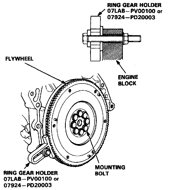4. Remove the eight flywheel mounting bolts and fly-wheel.