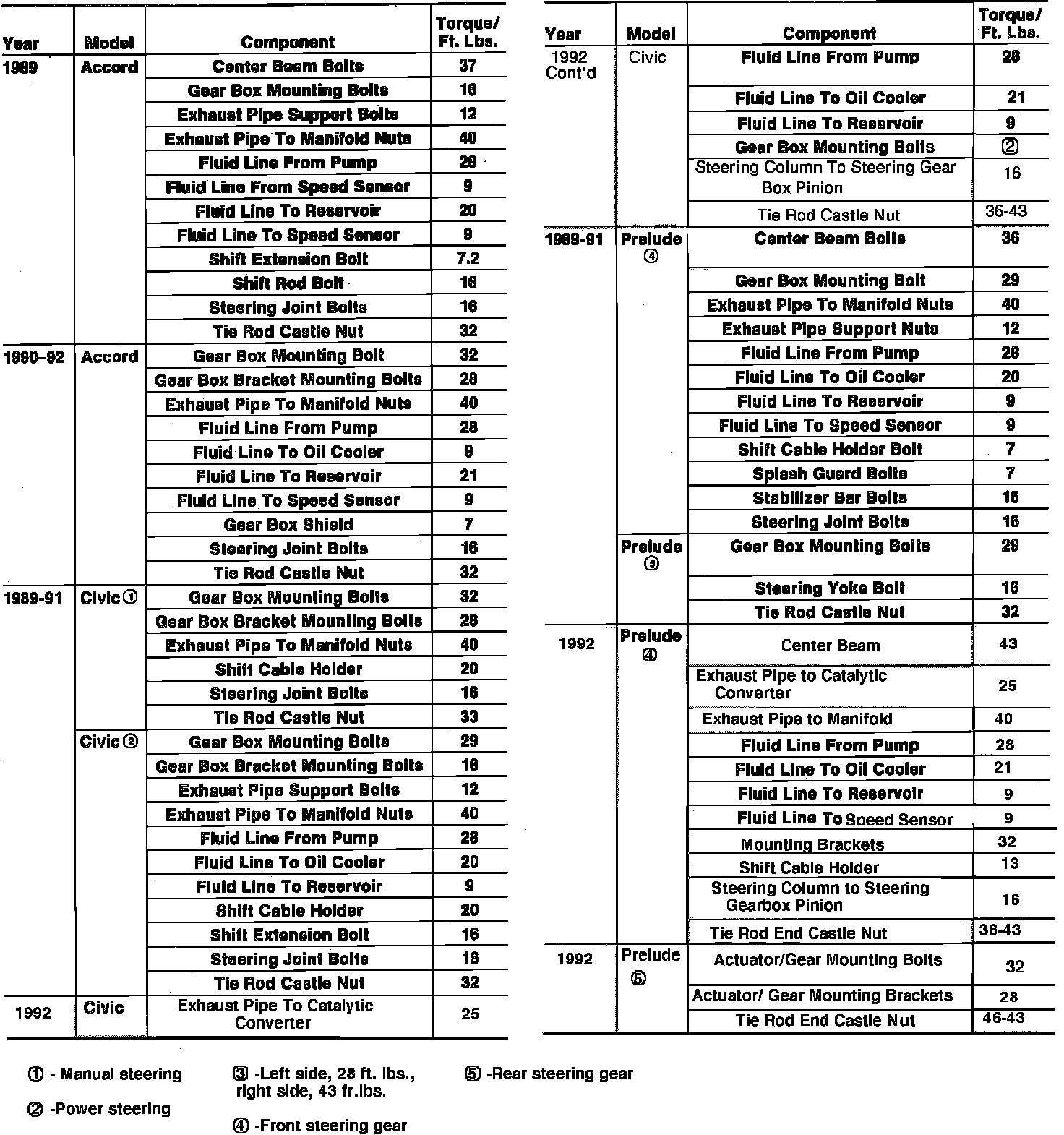 Steering: Specifications