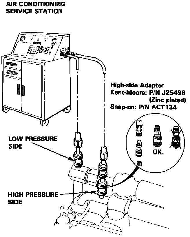 - Attach an Air Conditioning Service Station as shown. Follow the equipment manufacturer's instructions.