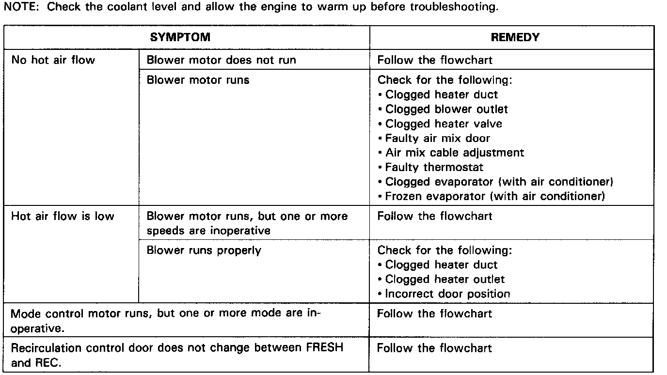 Heater Symptom Chart