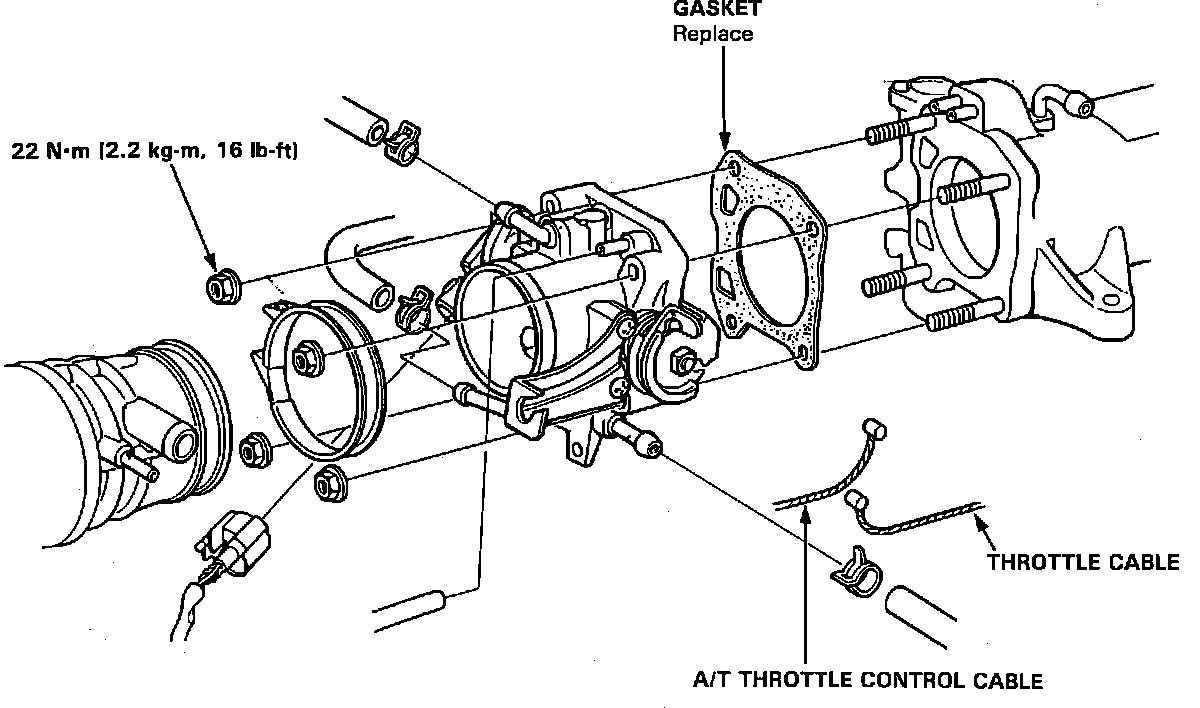 7. After reassembly, adjust the throttle cable and, on A/T equipped cars, the A/T throttle control cable.