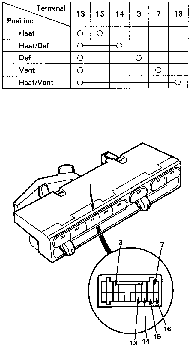 Check for continuity between the terminals according to the table below.