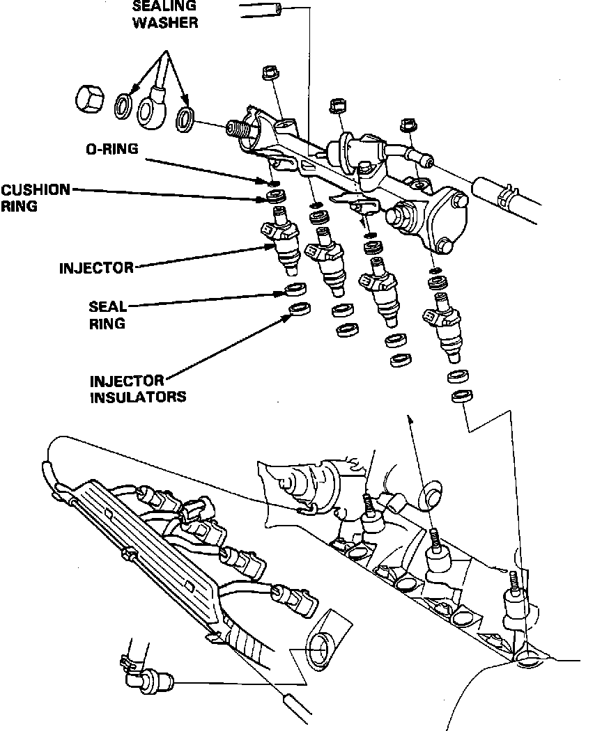 19. Turn the ignition switch ON but do not attempt to start the engine. After the fuel pump runs for approximately two seconds, the fuel pressure rises. Repeat two or three times, then check for fuel leaks.