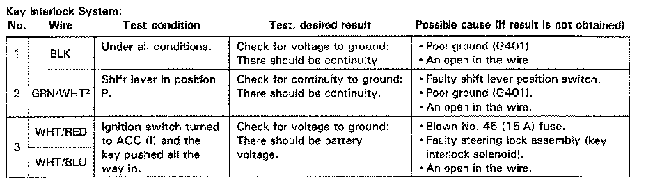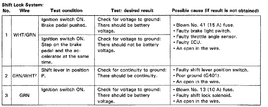 NOTE: If the shift lock solenoid clicks when the ignition switch is ON and the brake pedal is pushed (the shift lever is in the P position), the shift lock system is electronically normal.