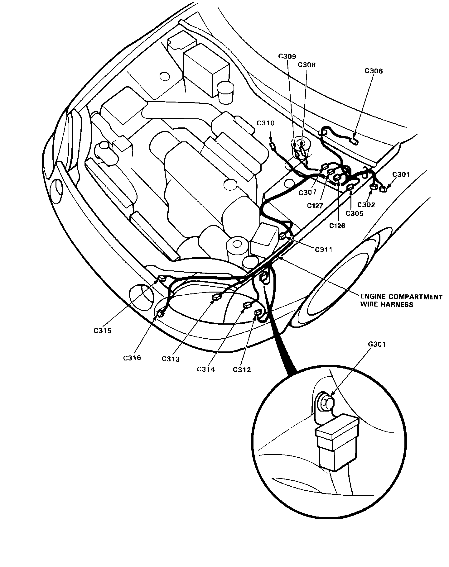 Connector Locations And Wire Harness Routing: Engine Compartment Wire Harness: