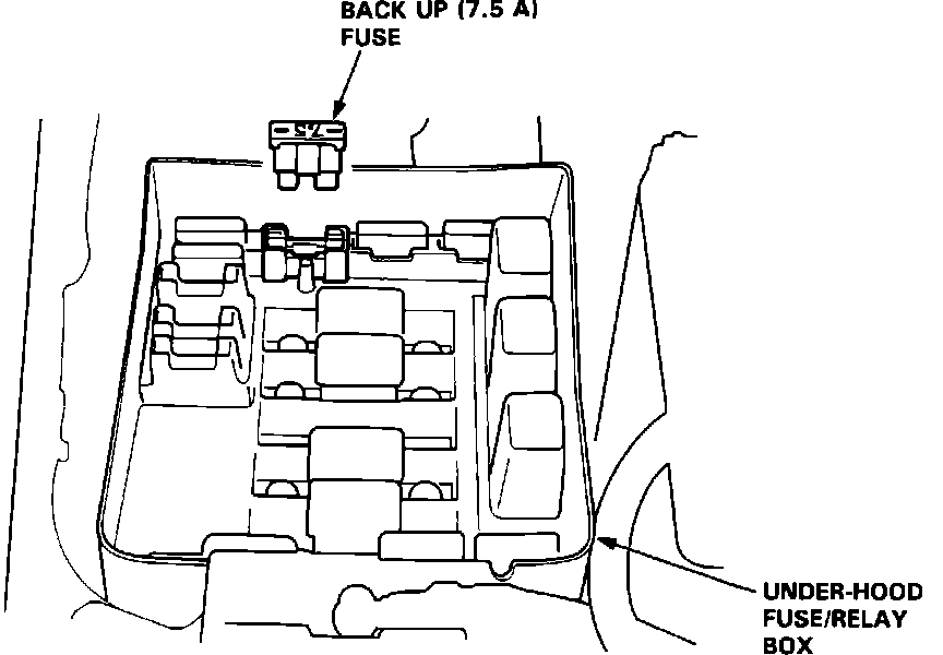2. Remove the Back Up fuse (7.5A) from the underhood fuse/relay box.