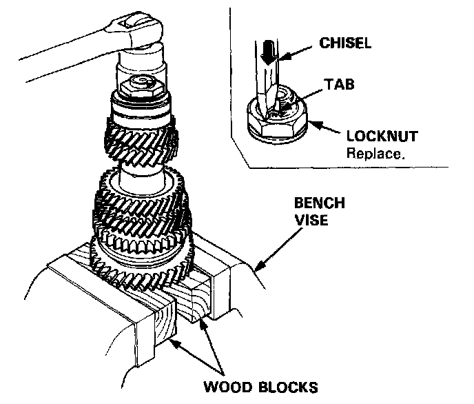 1. Securely clamp the countershaft assembly in a bench vise with wood blocks.