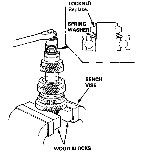 8. Securely clamp the countershaft assembly in a bench vise with wood blocks.