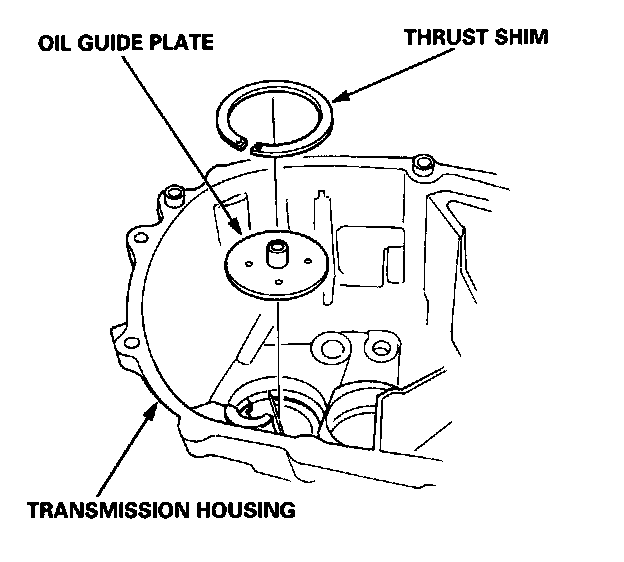 6. Install the oil guide plate and thrust shim into the transmission housing.