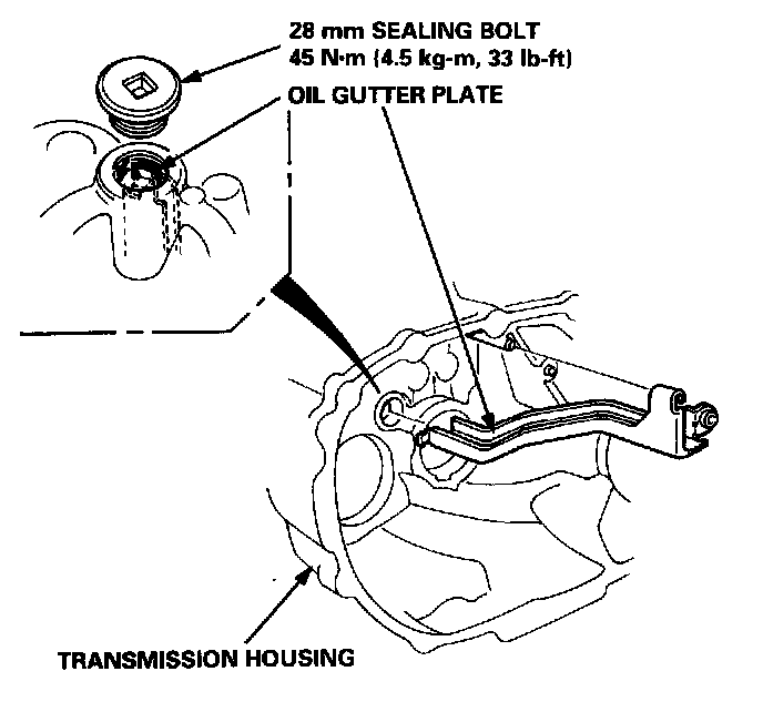 7. Install the oil gutter plate in the transmission housing.