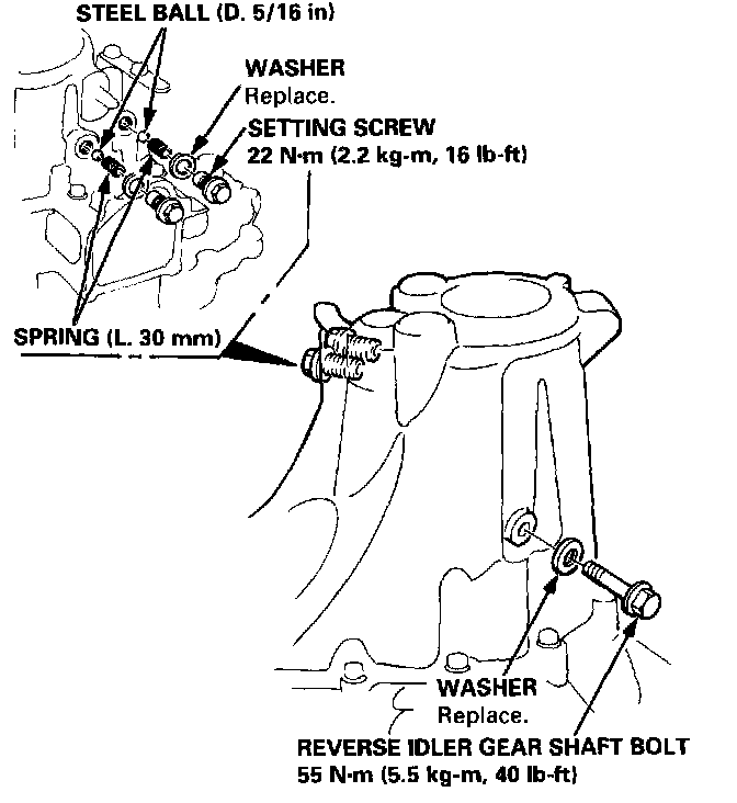 16. Install the reverse idler gear shaft bolt.
