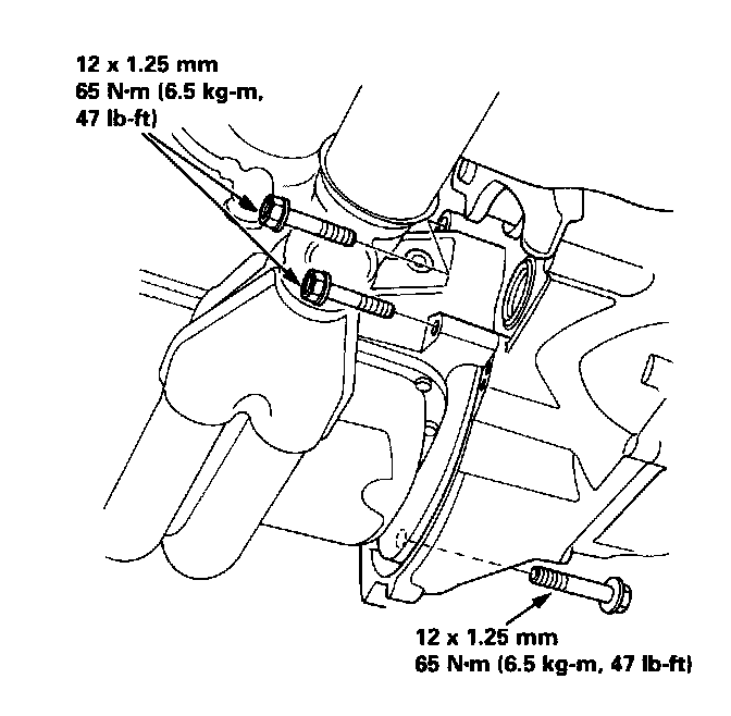 33. Loosen the three mounting bolts of the front engine mount bracket, then torque the three mounting bolts.