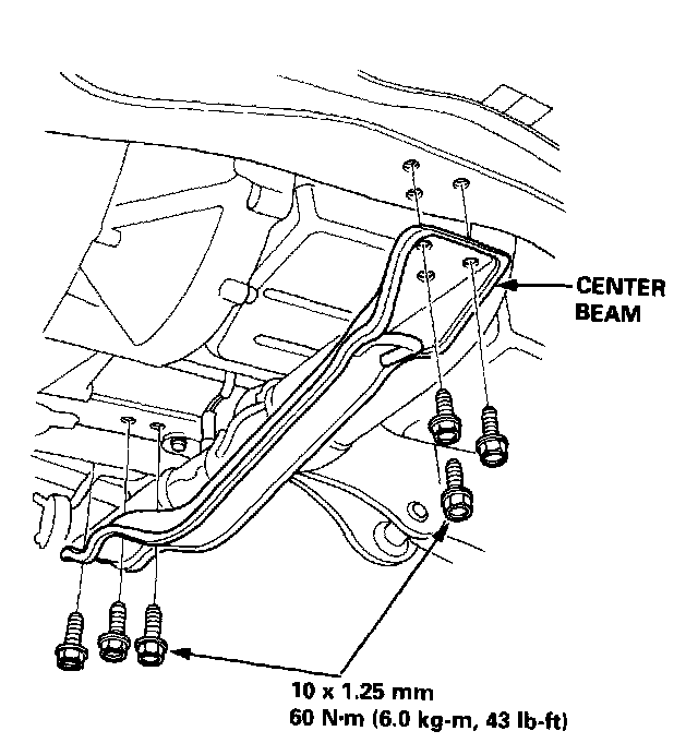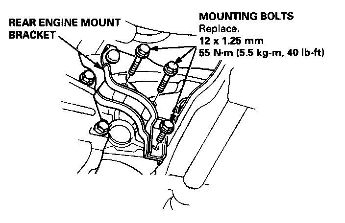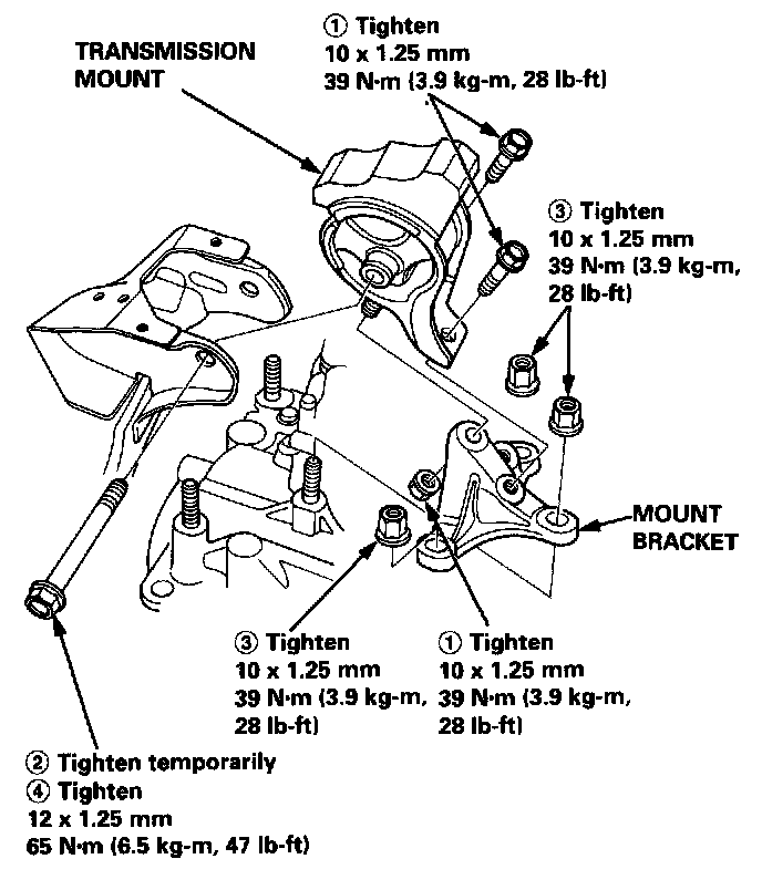7. Raise the transmission, then install the mount bracket and transmission mount.