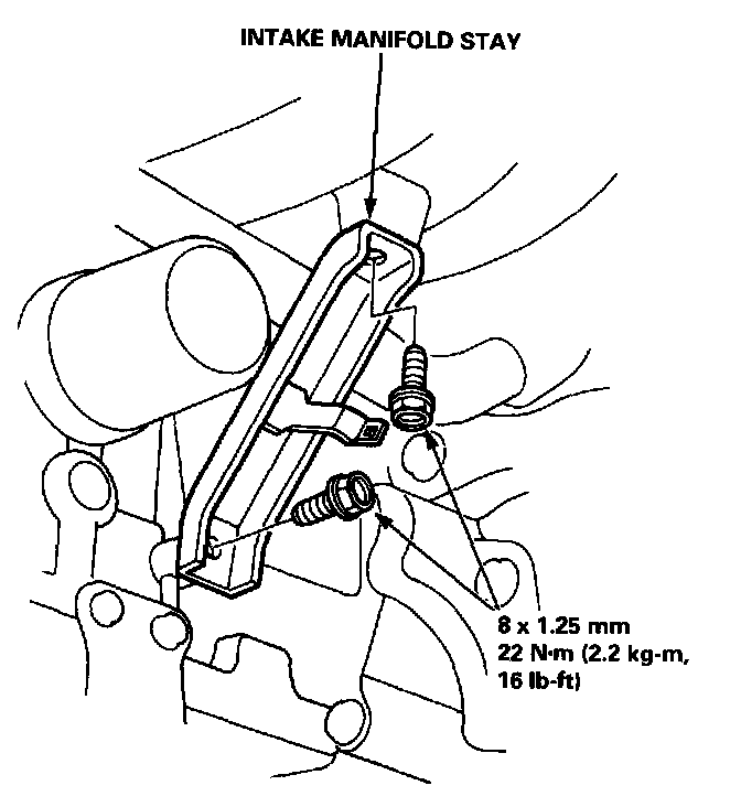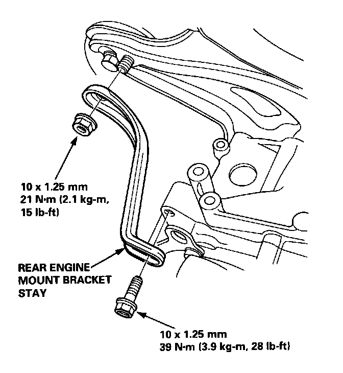 NOTE: Loosely install the stay mounting bolt and nut, then torque in the sequence shown.