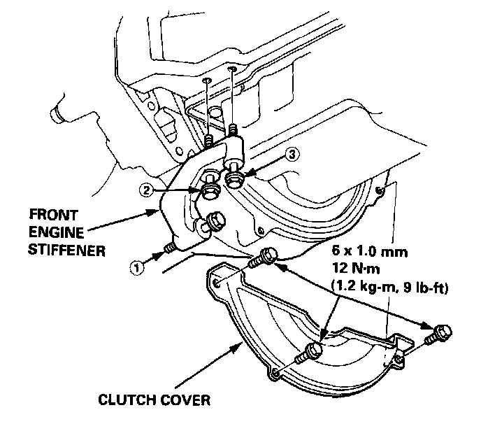 NOTE: Torque the front engine stiffener mounting bolts following the numbered sequence.