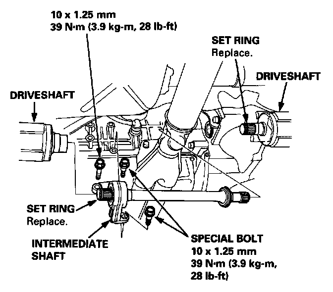 13. Install the intermediate shaft and driveshafts. Drive Axles, Bearings and Joints