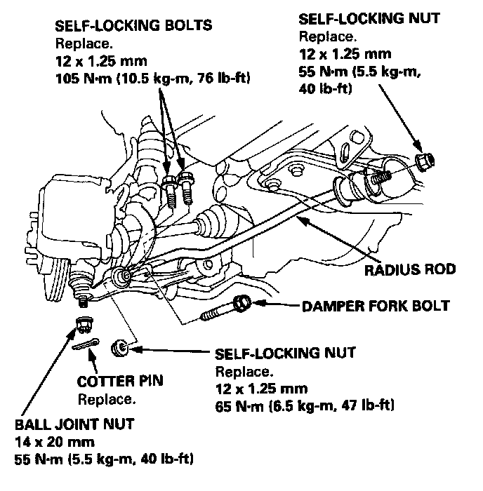 NOTE: Check for deterioration or damage of the radius rod rubber bushings.