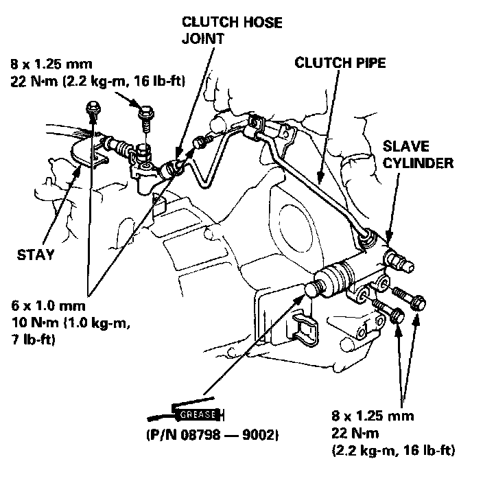 19. Install the slave cylinder, then install the clutch pipe joint and stay.
