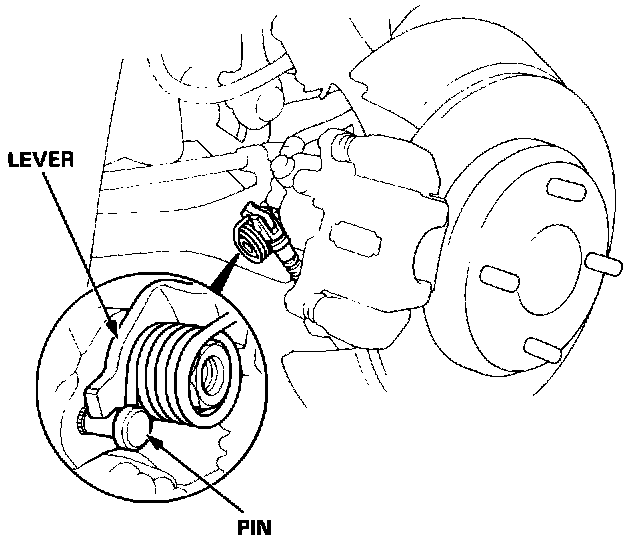 ^ Start engine and depress brake pedal several times to set the self-adjusting brake.